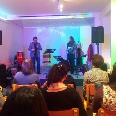 Somos uma comunidade evangélica viva em Berlim, com Jesus Cristo no centro de tudo o que fazemos. Nossos corações estão abertos para pessoas de todas as culturas, idades e histórias de vida. O que nos une é a fé em um Deus vivo e o desejo de tornar Seu amor visível no dia a dia. Reunimo-nos regularmente para orar, estudar a Bíblia, louvar a Deus e nos fortalecer uns aos outros na caminhada da fé. Nossa comunidade é marcada por acolhimento, sinceridade e relacionamentos verdadeiros. Acreditamos que cada pessoa é valiosa e tem um lugar especial na família de Deus.Se você já tem uma caminhada com Cristo ou ainda está buscando respostas — será muito bem-vindo entre nós!.